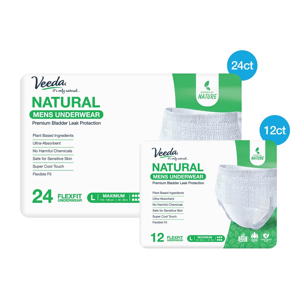Veeda men’s pull up incontinence underwear provides discreet and reliable protection to support a leak-proof lifestyle. Our absorbent, disposable underwear is ultra thin with anti-leakage cuffs and perforated sides for easy removal to keep you comfortable throughout the day and night. Veeda adult underwear fits like real underwear and does not contain harmful chemicals so is safe for everyday use and won’t irritate your skin. Our odourless men’s underwear is available in sizes: small/medium (S/M), large (L) and extra large (XL) for your convenience and comfort. Shop Veeda incontinence products today.